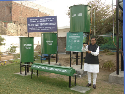 Sulabh offers a simple low-cost, water efficient two-pit toilet prototype that can be built in rural areas. It uses just 2 lits of water per flush, in comparison to the conventional flush system that uses as much as 10-15 lts. His model has earned world-wide regognition and is used in many developing countries and has earned him one of the most prestigious awards — the Stockholm Water Prize in 2009, awarded for contribution to water conservation.